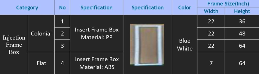 Our glass insert frames are available in multiple styles and materials to suit different design and performance needs. Choose from colonial or flat rigid PVC frames for a classic or modern look, or opt for our injection frame boxes made from durable PP or ABS materials for added strength and precision. Each option is engineered for a secure fit, long-lasting performance, and a clean, professional appearance.