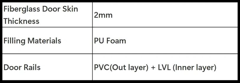 Our fiberglass door slabs combine strength, insulation, and modern design. With a 2 mm fiberglass skin and PU foam core, they provide excellent energy efficiency and resist warping, dents, and corrosion. Reinforced with PVC and LVL door rails for added durability and moisture protection, these slabs offer the natural look of wood with lasting, low-maintenance performance.